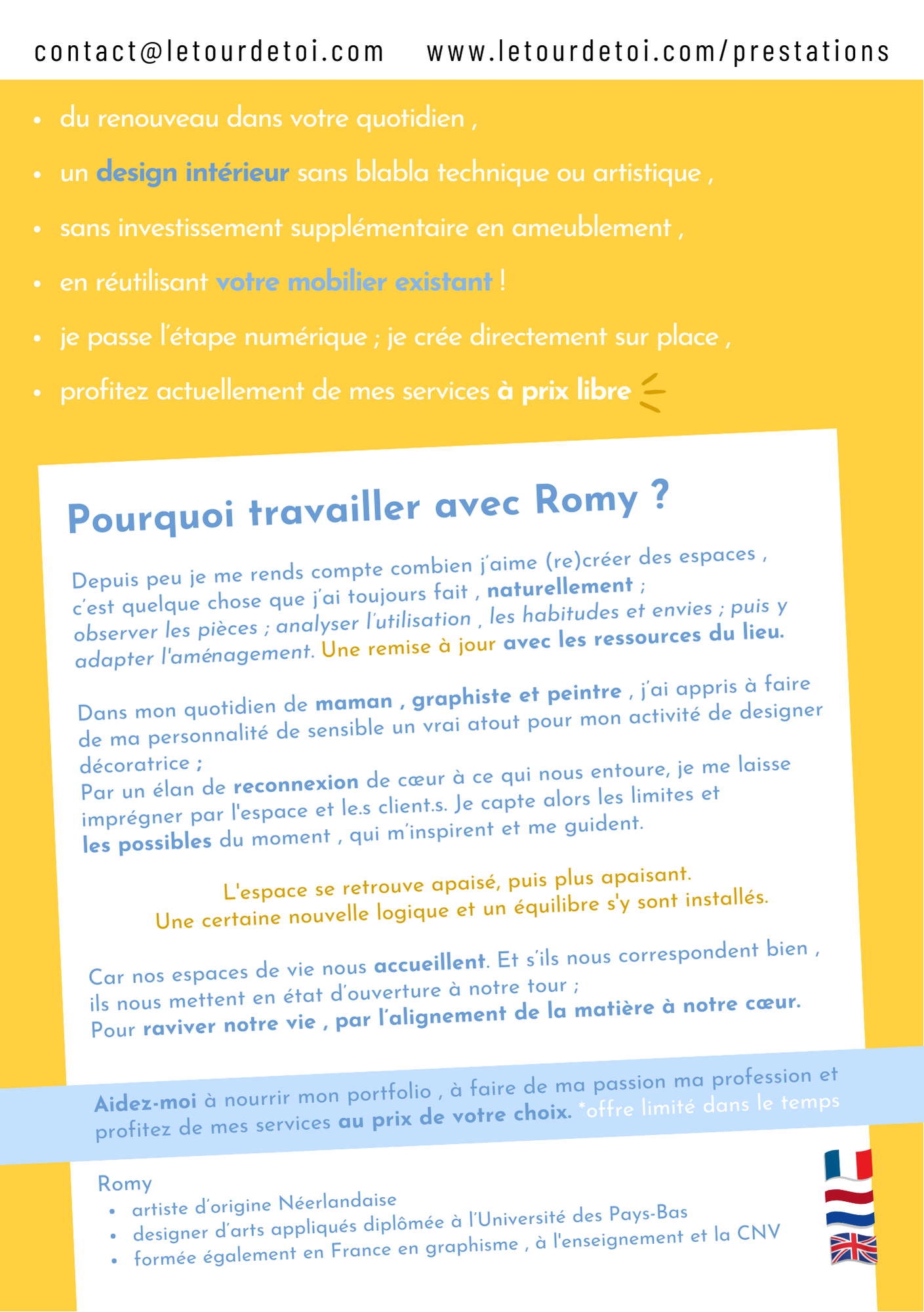 j'offre mes services de créatrice d'espaces au prix de votre choix.